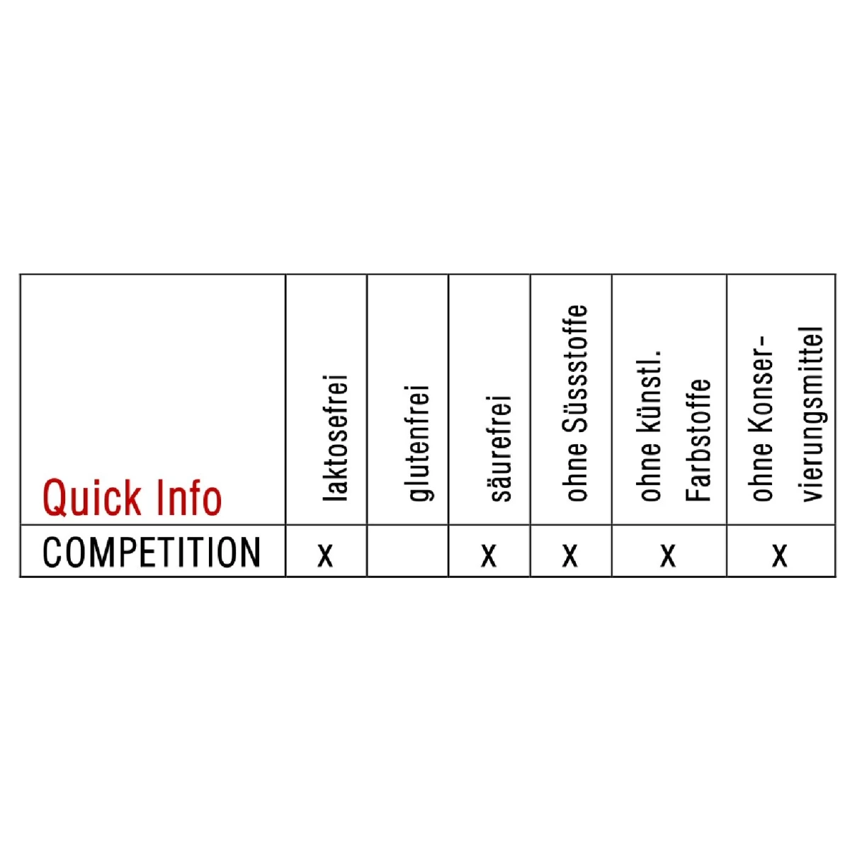 - durch die spezielle Zusammensetzung und sehr milde Aromatisierung ist COMPETITION® auch in hohen Konzentrationen und während hochintensiver Belastung optimal verträglich
